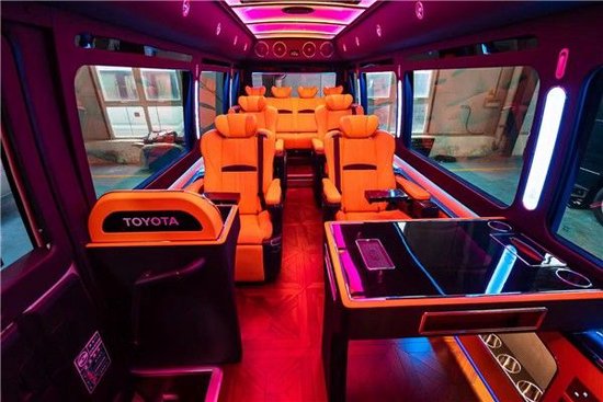 丰田考斯特(丰田柯斯达 (配置|询价))还在舒适性上做了一些实用的配置,如双层(中空)隔热玻璃,华通丰业丰田考斯特在灯光和车厢氛围方面做了巨大的改善,全车都使用LED灯光,地毯灯,阅读灯,立柱等,航空顶灯,台阶灯,窗帘灯等灯光效果的搭配让丰田考斯特呈现给乘客更加绚丽的色彩。