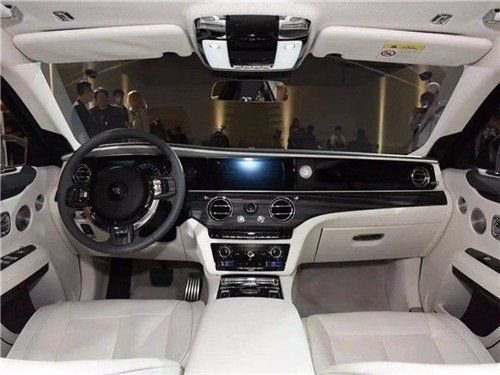 劳斯莱斯古思特 (配置|询价)纯手工打造的内饰,处处都体现着精致感,由2000名工人,经过60双手,花费至少20天打造。三辐方向盘尺寸适中,握起来很舒服。控台配有一块石英表,看起来很复古,与劳斯莱斯车型的高贵相互映衬。中控台配备了10.25英寸显示屏,集成了导航、多媒体、蓝牙电话、行驶信息等。通过类似iDrive的旋钮区域控制,也带有手写功能。