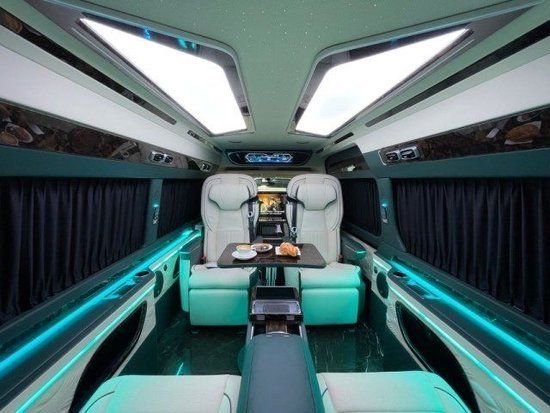带3C认证-航空头等舱(触摸控制屏幕) 功能:通风、加热、气动按摩、二级腿拖、180°轻松旋转、轻质化全冲压骨架、注塑饰板 三排定制LM款航空座椅:带3C认证-航空头等舱 功能:通风、加热、气动按摩、二级腿拖、轻质化全冲压骨架 内饰整体风格造型设计 半隔断造型吧台(触摸控制屏、杯托、纸抽盒) 一键电动升降高清电视 吊顶显示屏(显示车辆实时状态) 电动伸缩烧水壶(220V大功率) 车顶造型三色顶灯 顶部满天星(打孔皮质软包工艺)订车微信:18649226789 阿亮(同微信)