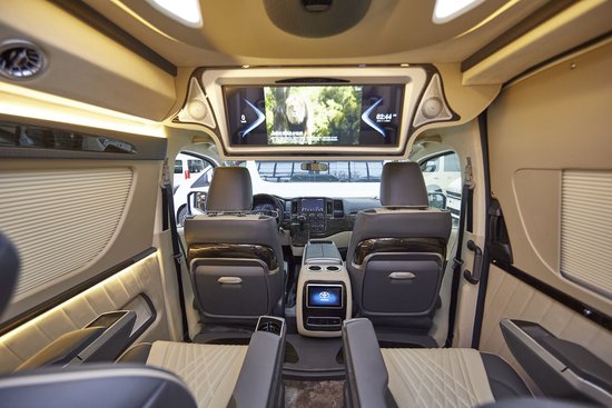 丰田海狮整车(东方众威)升级了加强型的隔音隔热处理,丰田海狮7座车内带空气净化系统,无线充电系统。在进门侧加装了氧化铝脚踏带迎宾灯的,(东方众威)整车都是采用纳帕级皮质进行包覆的,侧壁桃木装饰,手动百褶窗帘,后舱暖风系统,最后说说棚顶灯光,这个有智能触摸控制系统。