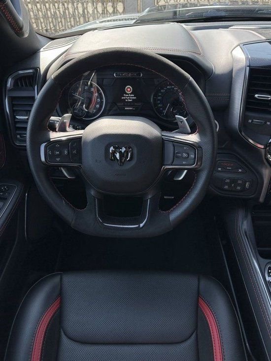 道奇公羊1500 22款 6.2 TRX霸王龙 2级包 喷砂版包内饰采用了家族式设计,整体看上去也非常硬气具有强烈的美式风格,搭配多功能方向盘和大尺寸液晶竖屏并且做工精细。无论是外观还是内饰设计得都非常成功,强悍的外观搭载强劲的动力可以说是当之无愧的越野王者车型。