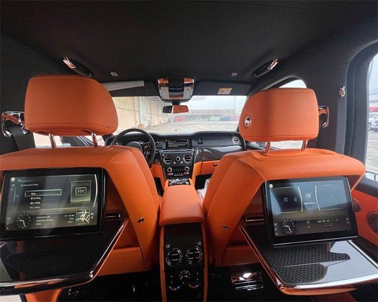 置身库里南奢华宽敞的内部空间,奢适之享超越期待。此车配置:库里南Black Badge 黑/橙 四座、流星顶、腰线、后排娱乐、定制内饰、定制音响、驾驶员辅助系统、野餐桌、外部不锈钢包装、前后通风加热座椅、后排按摩座椅、羔羊毛脚垫、RR头枕刺绣、 VIN牌、仪表台顶针式缝线 。