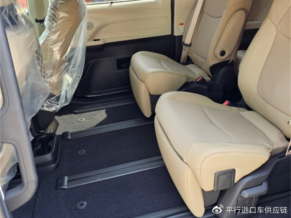 国产赛那:后排座椅没有腿托设计,仅在高配版本的车型上才会搭配后排通风座椅。取消了第三排遮阳帘、第二排儿童安全座椅、12V交流电源。座椅采用仿皮材质。