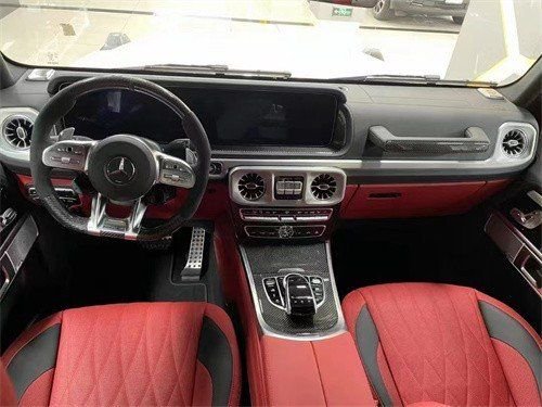 奔驰G63豪华精致的真皮包覆提供了足够的舒适性和支撑性,通风和加热功能让乘客免受高温和寒冷的煎熬。中控台多处均采用碳纤维材料覆盖,带彩色TFT显示屏的AMG仪表盘、AMG主菜单和单独的挡位显示器以及采用白色照明的AMG门槛。名贵的选材及精湛的内装令人拍案叫绝。