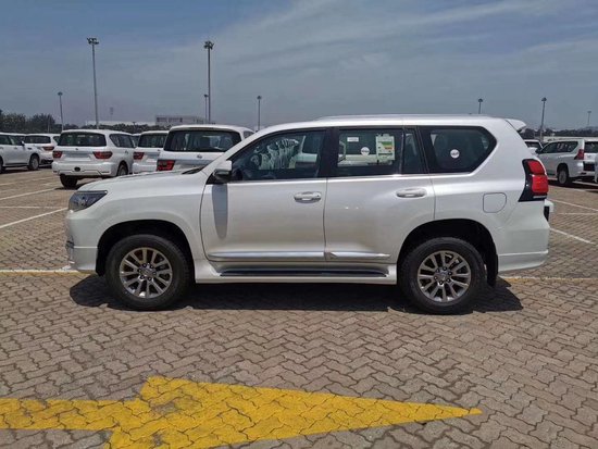 丰田霸道 (配置|询价)4000配置详情:真皮通风版 9气囊 前后镀铬大包围 前2后4电眼 氙气大灯 LED日行灯 前雾灯 大灯清洗 车身防擦条 航空踏板 一体式行李架 真皮座椅 主副驾驶电动座椅 主副驾驶座椅通风 主驾驶电动腰托 仪表盘炫彩显示屏 中控大屏幕 倒车影像 自动空调 标准配置:全时四驱 六速变速箱 无钥匙进入 一键启动 冰箱 电动折叠后视镜 七座 胎压检测 多功能方向盘 高速四驱与低速四驱切换 二挡起步 中差锁 车身稳定 坡道辅助 尾翼 主驾驶座椅电动腰托 定速巡航。