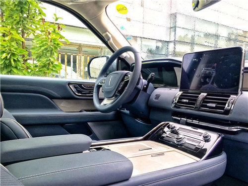 新款林肯领航员这款车的内饰方面设计非常豪华,配备了多功能方向盘,拥有接打电话、蓝牙以及加热等功能。方向盘前方是12.3寸全液晶仪表盘,尺寸够大,分辨率也很高。旁边是10寸的中控显示屏,许多报警、导航、音乐和三区空调等功能都可以在这上面进行调节。
