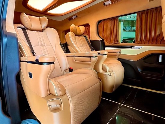 车内采用麂皮绒的软包加上星盾天幕顶灯,整车在看不到的地方,比如四周全部做了隔音的处理,窗户上都加装的是高级私密窗帘,既可以避免阳光的直接照射,维护车内的一个用车环境,也可以很好的保护我们车主的隐私。