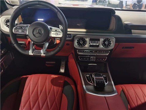 奔驰G63经过全新改款内饰豪华气派,卓越的品质和精致的工艺在车内体现得淋漓尽致,对细节的精益求精是内饰设计中的重要原则。车内采用深色调与桃木装饰,黑色真皮运动座椅非常舒适,方向盘以高档真皮包裹装饰,触感极其细腻。配有桃木装饰的操控台,稳重大气,同时提高了整体的质感。