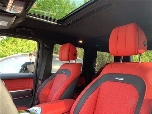21款奔驰G63如果觉得新一代奔驰G在轮廓上保持了经典的造型,那么拉开车门你会发现什么是奢华。目光所及之处,都是奔驰时下最新的设计语言,同时也没有丢掉G级本身的硬线条以。贯通式的双屏设计以及带Dual thumb control拇指控制系统的全新方向盘、最新的COMAND交互系统以及“万国”钟表、碳纤维饰板、真皮材质等等,打造出完全属于奢华的车内座舱。