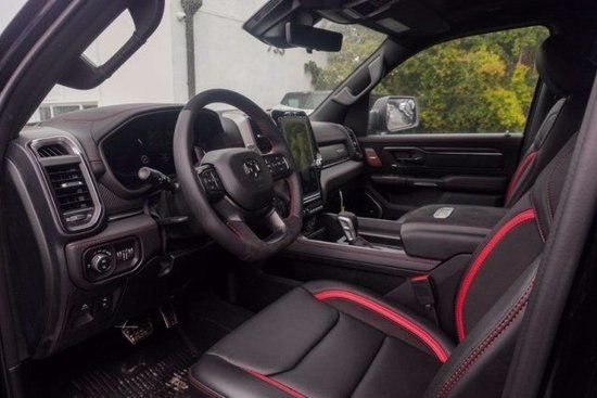 2023款道奇霸王龙在内饰部分进一步强化了其高性能版本的形象,中控台和座椅随处可见的TRX标识便是最好的例证。同时,23款道奇霸王龙还配备了12英寸竖置中控屏幕,除了支持蓝牙、导航和车载Wi-Fi等常见功能,还支持Apple CarPlay和Android Auto手机映射。