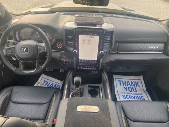 23款全新道奇霸王龙TRX在内饰部分进一步强化了其高性能版本的形象,中控台和座椅随处可见的TRX标识便是最好的例证。同时,作为道奇家族的旗舰车型,新车还配备了12英寸竖置中控屏幕,除了支持蓝牙、导航和车载Wi-Fi等常见功能,还支持Apple CarPlay和Android Auto手机映射。