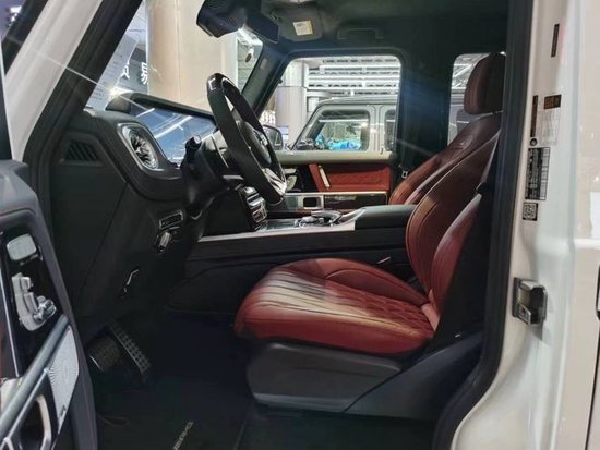 美版奔驰G63配置: 加强版“G级”内饰包(菱形格座椅,真皮仪表台,座椅按摩通风,珍藏版刻字把手),红色卡钳,碳纤维方向盘,AMG方向盘组件,22寸熏黑轮,碳纤维内饰