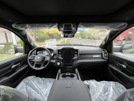 金属漆;后备箱便利包(4个可调的Mopar货物拉紧钩,拾取箱照明Mopar可展开式台阶);暗夜包(前排乘客豪华真皮桶式座椅带腰部调节,前排座椅加热带8项电动调节,方向盘加热);二级装备包(115伏辅助电源插座-后部,带双区自动温度控制的空调,车身色门把手,前加热座椅,加热方向盘,带5个 USB充电端口的媒体集线器,带停车功能的前后驻车辅助系统,电动可调踏板,雨量感应挡风玻璃雨刷器,带 开/关开关的后顶灯,后座下隔层储物空间,后窗除霜器,远程启动, 感应无钥匙进入,安全警报,带照明化妆镜的遮阳板,通用车库开门器);电子按需转移箱;可开启全景天窗;黑色脚踏板;喷涂内衬