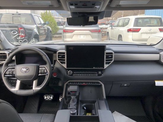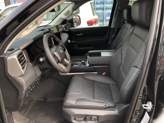 2023款丰田红杉的内饰的实用性与空间利用率在这代红杉身上均得到提升,坐进车内,第一感受就是大,前排的两个大尺寸的真皮座椅,自带打孔透气皮料,四幅式多功能方向盘,握在手里的质感不错,转向也没有想象那么重,T型的中控平台,尺寸方面也比一般车型大不少,14英寸的中控触摸屏,集成了几乎所有的影音娱乐以及车身控制功能。