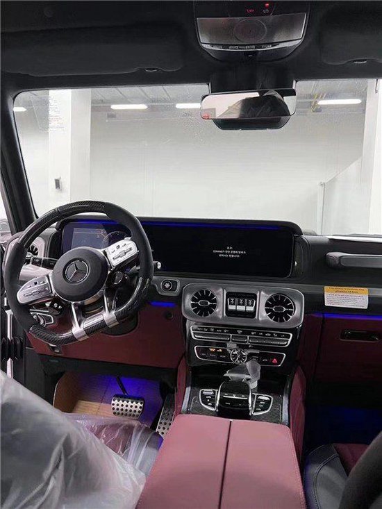 23款奔驰G63菱形格多轮廓真皮座椅,双拼的造型虽然在图片上看着不是很明显,但也凸显了它的时尚性,前座椅快速加热、通风,后排的话空间还可以,总体的舒适性表现还是很不错的。后排座椅还带有娱乐功能,或许在空间上有人说它差一些,但是娱乐性还是很高的。