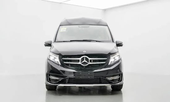 2022款奔驰v260l商务车前脸最令人瞩目的就是双层进气格栅正中央那超大尺寸的奔驰三叉星标志,除了飞翼式LED大灯、新车还配备雾灯来提高夜视能见度