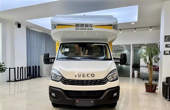 采用依维柯欧胜国六底盘,带有空气悬挂,动力部分搭载的是3.0T柴油发电机,匹配8AT手自一体变速箱,最大功率170马力,峰值扭矩400牛米,荷载6人,C证可以驾驶。电路系统配有48V 12.5度电、3500W充逆变一体机、1200W硬板太阳能,除此之外进口卡洛西行车冷暖风机、行车冷暖风+驻车燃油燃油暖风系统、三菱1.5P变频静音空调,保障在车内也能实现冬暖夏凉。