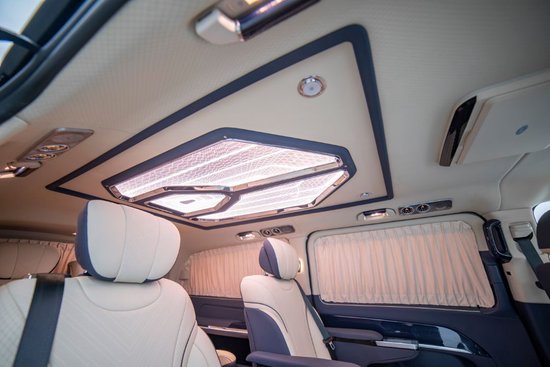 这款奔驰威霆7座商务车的车窗还特意设计隐私窗帘,给老板一个更安全私密的环境,后备厢空间也格外宽敞。