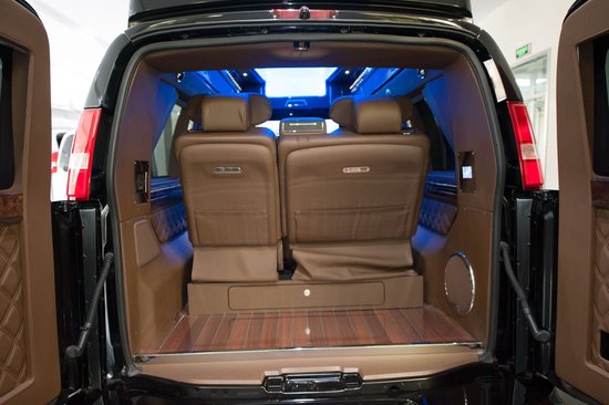 如果您是一位商务人士,当您需要一辆豪华汽车接待重要客户时。这辆商务房车 GMC G660 就成了最合适不过的选择,让相约同乘的尊贵客人可在彼此颇觉舒适的交流距离中亲密攀谈,犹如在私人客厅里的真皮沙发上。在车内洽谈业务时甚至可以使用车载电脑以及大尺寸液晶电视播放相关文档或幻灯片。而除了霸气的外观、丰富的功能和奢华的内饰之外,更重要的是第三排座椅的可变真皮大床,可以让它成为一间移动的卧室。