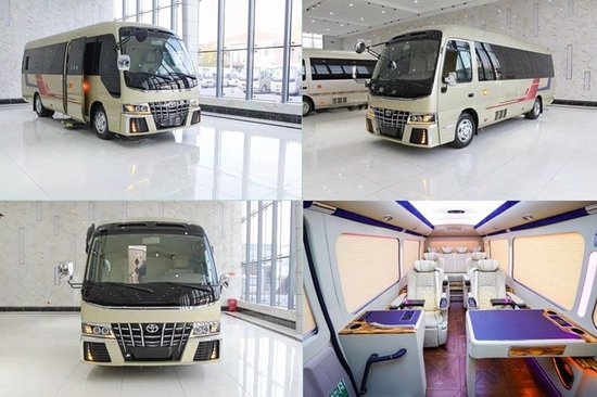 同时还首次设计了隐藏式的鞋柜和隐藏式的车载式保险柜。这辆车车厢后部还配备有车载空气净化器,以此打造出最舒适的的车内环境。 这辆车根据车载特性的需要和显示器厂家定制的前后两台LED液晶显示屏,和车厢后部公司最新研发的头等舱级电动座椅床,电动控制可变床可变座椅,以及豪华房车级卫生间的配备,带有换气扇、马桶、智能电控垃圾桶。卫生间的一侧设计了一处高尔夫设备及行李放置台,底部加高的处理和绑带的设计看上去非常高大上。本公司所设计改装的公务、商务接待用车,被国家大型企业选用,用于高规格礼宾接待,大型企业礼宾车,贵宾车,航空座椅驾彰显大气风范,展示实力。实力大厂,值得信赖,欢迎来电详询!专业改装顾问为您服务!质量担保,价格优惠。提供板车运输服务了解更多改装方案欢迎咨询!丰田考斯特 7座至23座全系现车,低价出售,当日开票提车 来电购车随机减免5万至8万元起 (额外赠送万元购车大礼包)