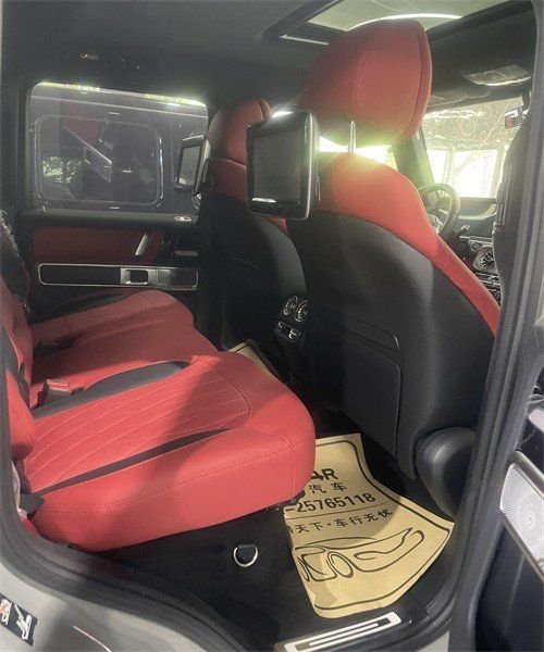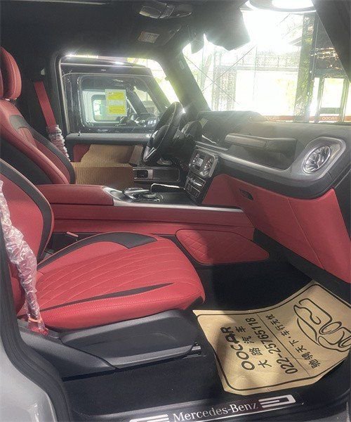 满配奔驰G350d 灰红 独家纳帕 双色、后娱乐、雷测、20寸多辐条黑色轮毂、环影、天窗、环绕音响、电动驻车制动器,行李厢盖/卷帘,前饮料架(双),后窗可加热,后雨刷,内饰灯包,车内后视镜无框,可变显示屏的仪表盘。