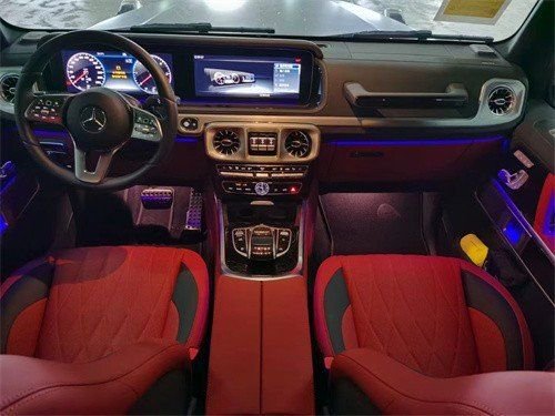 2022款奔驰G (配置|询价)400d经过全新改款内饰豪华气派,12.3寸液晶双连屏,卓越的品质和精致的工艺在车内体现得淋漓尽致,对细节的精益求精是内饰设计中的重要原则。车内采用深色调与桃木装饰,黑色真皮运动座椅非常舒适,方向盘以高档真皮包裹装饰,触感极其细腻。配有桃木装饰的操控台,稳重大气,同时提高了整体的质感。各种功能按钮应有尽有,丝毫不次于豪华轿车的功能。