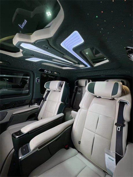 全新奔驰威霆车内全部采用真皮制作,豪华木饰装点,米色与灰色的搭配,整车内饰华贵精美,顶部全车的金色氛围灯与后半部光纤的顶灯搭配,豪华氛围立竿见影,顶部全部麂皮绒包覆,用料可谓下足了成本奔驰威霆商务车,豪华与舒适兼得,尊享精品座驾;奔驰威霆改装高顶迈巴赫VS680商务7座版,完美与尊贵的象征。采用了2.0T的涡轮增压发动机,最大功率211马力,最大扭矩为350N·m。奔驰威霆豪华商务车,外观大气稳重,内饰高调奢华,时尚且不缺乏优雅,如此座驾,能够与您匹配,岂不乐哉?
