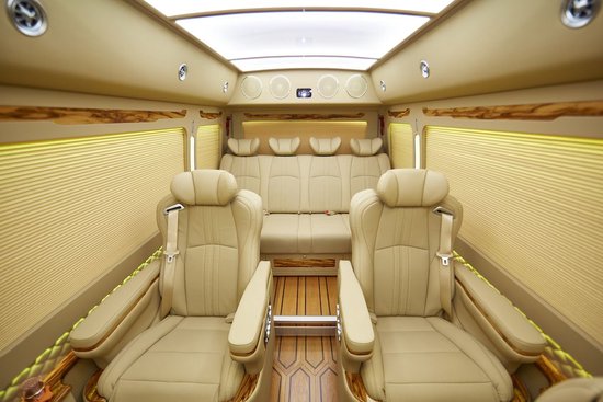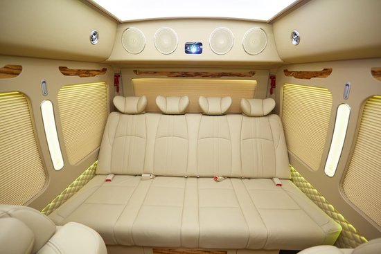 座椅是一水儿的埃尔法款航空座椅(此车的航空座椅电动调节首次研发转移到了侧壁上),带原装小桌板,能前能后能起能躺多向电动调节一键还原、加宽加大型、两侧加装固定扶手、扶手镶嵌桃木,座椅功能有座椅加热、座椅通风、电动座椅脚托两段可电动调节抬高或伸长,有杯架,头顶侧面有多功能挂衣钩,办公桌配备有两孔和三孔的220V供电接口以及USB口、HDMI高清接口。