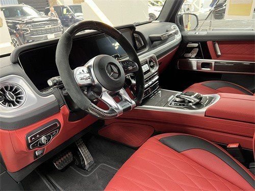 全新造型的平底式AMG运动方向盘,其两侧配以打孔皮质包裹,下部镀铬装饰的造型也与新G500明显不同,看上去十分战斗。此外,全液晶仪表盘+中控大屏的双12.3英寸屏幕设计在新车上也没有缺席,营造出了浓郁的科技感。内饰档次、质感和科技配置都明显提升全新奔驰G级 (配置|询价)的内饰相比老款有了明显的提升,采用了奔驰最新的双屏幕式设计,全液晶仪表盘和中控台屏幕都达到12.3英寸。同时内饰质感和工艺都有了很大的进步。