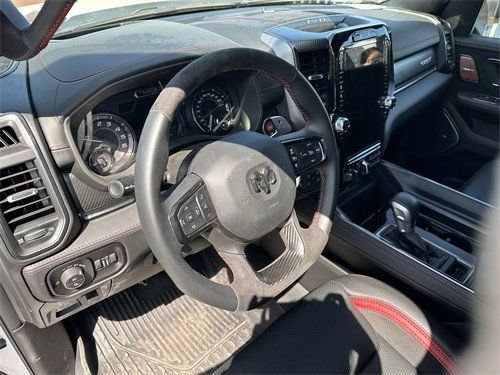 22款道奇霸王龙内饰部分进一步强化了其高性能版本的形象,中控台和座椅随处可见的TRX标识便是最好的例证。同时,作为道奇家族的旗舰车型,新车还配备了12英寸竖置中控屏幕,除了支持蓝牙、导航和车载Wi-Fi等常见功能,还支持AppleCarPlay和Android Auto手机映射。