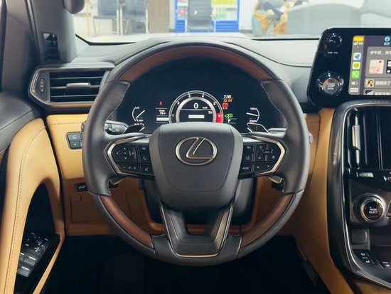 23款改款雷克萨斯lx600内饰采用了对称式中控台设计、继续提供液晶仪表和HUD抬头显示等配置。并首次加入双屏显示器该中控屏由12.3英寸的上屏和7英寸的下屏组成。另外车辆启动按钮被设置在了中控屏一侧,并首次配备了指纹识别。内饰采用了家族式最新的设计风格,整体设计十分的简洁大气,采用了上下双中控屏幕的设计进一步提升了整车的科技感。三幅式的多功能方向盘按键分布清晰并且采用了银色的镀铬材质进行点缀,看上去也更加精致。