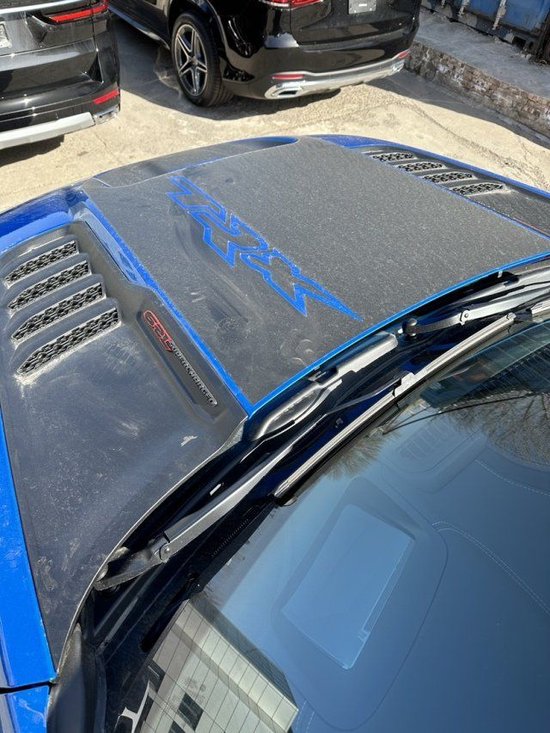配置:TRX二级包,蓝色金属漆,下双色车漆,高级车床包,全景天窗,机盖TRX贴纸