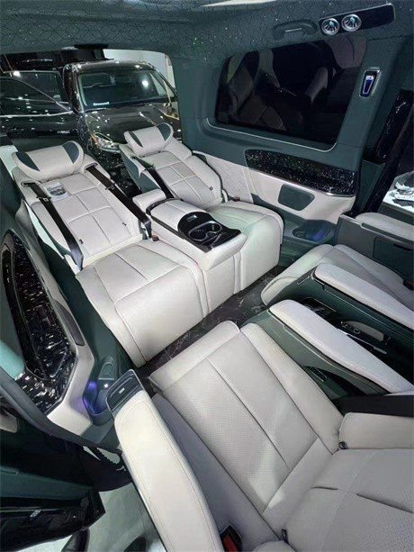 全新奔驰威霆车内全部采用真皮制作,豪华木饰装点,米色与灰色的搭配,整车内饰华贵精美,顶部全车的金色氛围灯与后半部光纤的顶灯搭配,豪华氛围立竿见影,顶部全部麂皮绒包覆,用料可谓下足了成本奔驰威霆商务车,豪华与舒适兼得,尊享精品座驾;奔驰威霆改装高顶迈巴赫VS680商务7座版,完美与尊贵的象征。采用了2.0T的涡轮增压发动机,最大功率211马力,最大扭矩为350N·m。奔驰威霆豪华商务车,外观大气稳重,内饰高调奢华,时尚且不缺乏优雅,如此座驾,能够与您匹配,岂不乐哉?