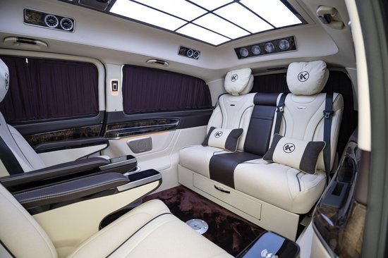奔驰V260L商务车为基础量身打造的一款时尚双拼色豪华商务车,由克蒂工厂操刀,克蒂是一家承袭美国血统的高端商务车定制改装公司,旗下圣姆峰更是它们的代表作。不管是内饰还是外观,在奔驰V260的基础上都有想当大的升级改变,外观升级为更为年轻动感的时尚双拼色,镜面香槟银撞色大气典雅黑,运动又不失商务沉稳感。