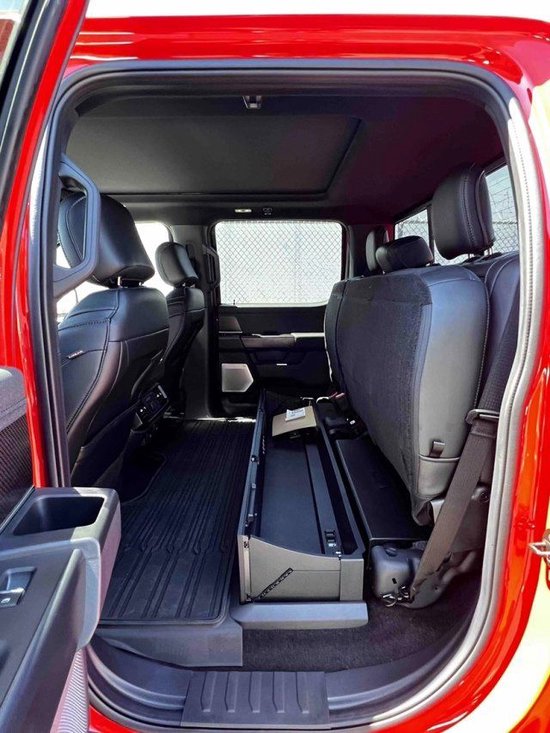 22款福特F150真皮座椅包裹性很强,无论是越野还是长途旅行都很舒服,丝毫不感觉到这大家伙的压抑二排空间也是十分宽敞,乘坐四个身材高大的乘客绝对没问题座椅折叠起来可以放一个冰箱,而且门上储物格空间也是够用虽然不像公羊后排那么豪华,有简易床。