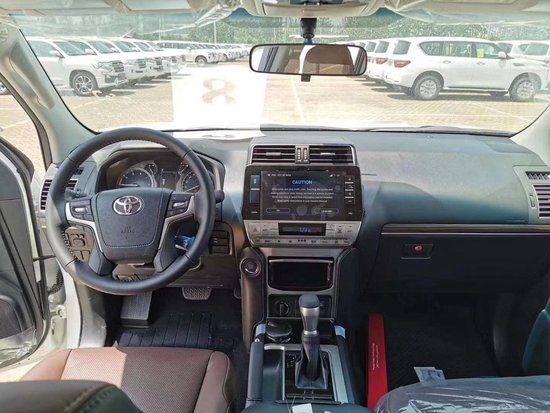 丰田霸道 (配置|询价)4000配置详情:真皮通风版 9气囊 前后镀铬大包围 前2后4电眼 氙气大灯 LED日行灯 前雾灯 大灯清洗 车身防擦条 航空踏板 一体式行李架 真皮座椅 主副驾驶电动座椅 主副驾驶座椅通风 主驾驶电动腰托 仪表盘炫彩显示屏 中控大屏幕 倒车影像 自动空调 标准配置:全时四驱 六速变速箱 无钥匙进入 一键启动 冰箱 电动折叠后视镜 七座 胎压检测 多功能方向盘 高速四驱与低速四驱切换 二挡起步 中差锁 车身稳定 坡道辅助 尾翼 主驾驶座椅电动腰托 定速巡航。