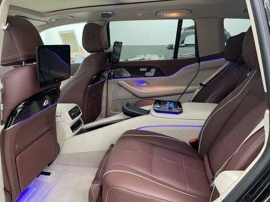 原车标配7座或单选6座布局,升级改装为迈巴赫GLS600,整体布局变为4座板,取消了第3排,后排升级为两张独立航空座椅,支持前后靠背角度,腰部调节通风,加热按摩,腿托调节,打造出头等舱级的舒适驾乘体验,后面的冰箱采用了和迈巴赫同样品质,冷热杯架,无线充电,平板电脑,小桌板等等也是应有尽有,除此之外,全景天窗上的遮阳帘我们也直接替换成了原厂件,迈巴赫同款的氛围灯也将全部升级到这款奔驰GLS450上面。