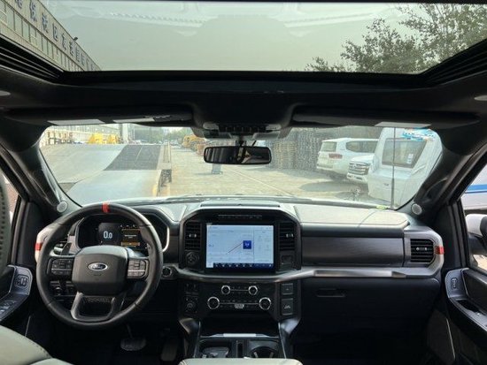 2023款福特F150猛禽中控台部分辅以银色饰板装饰六指针仪表盘的设计有些后工业时代的复古风格。采用带电冷热功能的可记忆式皮革座椅,头枕四向可调,搭配铝饰条和黑色钢琴烤漆内饰。可电动升降的后窗带隔板和电热除霜功能。