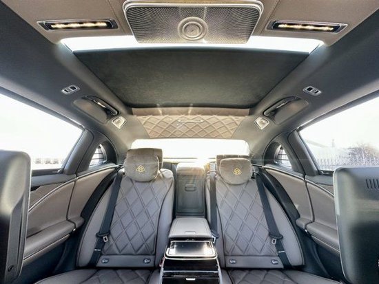 22款美规迈巴赫S (配置|询价)580 颜色:黑/咖S680匠心特别版的内饰(签名定制版)黄金刺绣状态:#4251 鑫航库 6号交车选配:迈巴赫大饼轮毂,菱形格座椅,定制化内饰手工包,金色迈巴赫刺绣,后排娱乐,桃木方向盘,4D大柏林音响,后轮10度转向,电吸门,抬显,菱形格顶蓬,二排腿拖,舒适头枕,魔术视觉控制,前后排座椅通风按摩加热,64色主动氛围灯,四区空调,电动后窗遮阳板,3D仪表盘,定制限量签名等对比中规:迈巴赫大饼轮 大柏林 10度后轮转向 全车小牛皮(包括车顶 门把 座椅)中规合成革内饰 菱形格真皮顶棚 等