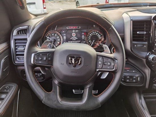 道奇公羊霸王龙在内饰部分进一步强化了其高性能版本的形象,中控台和座椅随处可见的TRX标识便是最好的例证。同时,作为道奇家族的旗舰车型,新车还配备了12英寸竖置中控屏幕,除了支持蓝牙、导航和车载Wi-Fi等常见功能,还支持Apple CarPlay和Android Auto手机映射。