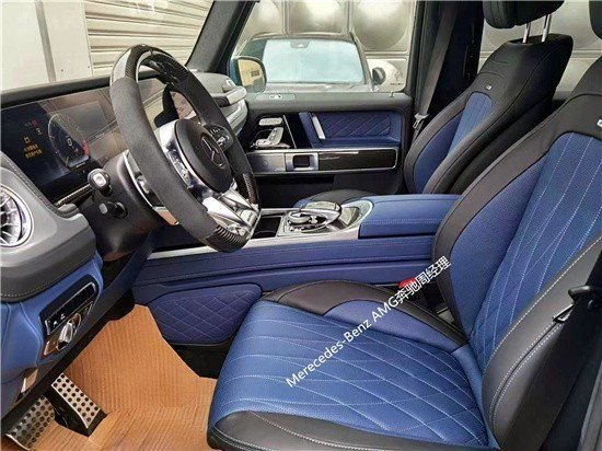 2023款奔驰G级AMG G 63车内越野气息十足,多处硬朗设计使其具有硬派越野车风格。采用现下流行的双连屏设计,让车内还具有一些科技感。双连屏界面显示清晰,易读性不错。方向盘为三辐式式设计,除了常见的功能按键区域之外,还在下方加设了一些按钮,驾驶仪式感十足,也可以让驾驶员专注力提升,不分神去操作其他功能。方向盘支持各种导航、电话、以及娱乐功能的控制按键。中控区域还采用了AMG车型独有的模拟时钟IWC设计,时钟中的数字和指针均采用纯金属材质,质感不错。