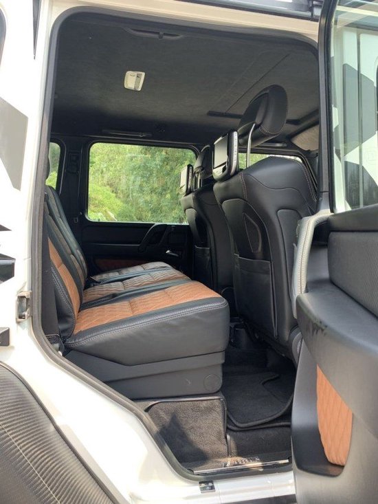 配置:滑动天窗、DINAMICA黑色车顶、氛围灯、3把差速锁、Desigo真皮座椅、巴博斯特殊调节悬挂系统、舒适头枕、21英寸5幅熏黑轮毂、前排座椅电动调节+座椅记忆、天鹅绒地毯、AMG碳纤装饰、停车辅助包、自动泊车功能/驻车系统、辅助控制系统、哈曼卡顿音响、AMG套件、盲点辅助、不锈钢包(车身不锈钢装饰)、后排娱乐系统、LED日间行车灯、魔术雨刮(感应雨刮)、AMG加速系统、车内照明、遮阳板+梳妆镜、儿童座椅附件、儿童安全锁、自动空调、双氙气头灯、电子防滑系统、制动系统、拖车头插座、倒车雷达、后排加热、全方位吸热玻璃、电子牵引系统、电子稳定系统、胎压监测、AMG性能转向系统、灭火器。