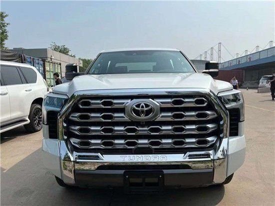 23款丰田坦途最具辨识度的莫过于前脸这块非常大的进气中网设计,通过亚光银的饰条搭配黑色蜂窝网状的造型使得视觉上整个中网的面积似乎从车标一直拉通到前保险杠的位置上,第一感觉无疑是非常野性的。