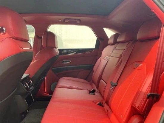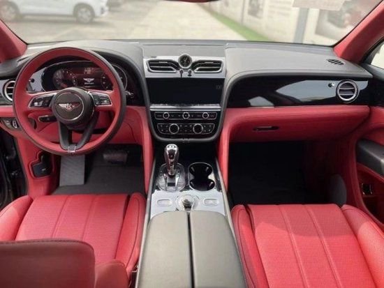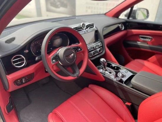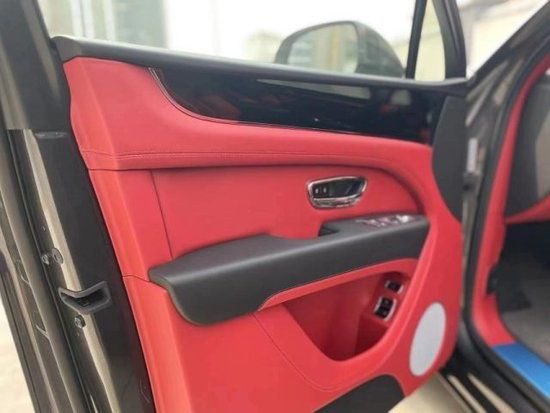 选装配置:特别定制外漆 座椅刺绣宾利徽章 前座舒适座椅配置 3 辐式双色加热真皮镶边方向盘 付费木饰 22 寸五幅定向铝合金黑色喷漆轮毂 颜色配置 添越炫黑套件 标准刹车碟配红色卡钳