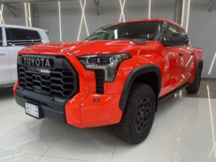 丰田坦途LTD TRD两侧泪痕造型LED矩阵大灯视觉效果并不输给福特猛禽。车身侧面看也有了方盒子外观效果,甚至还要熏黑车窗立柱营造出悬浮车顶。