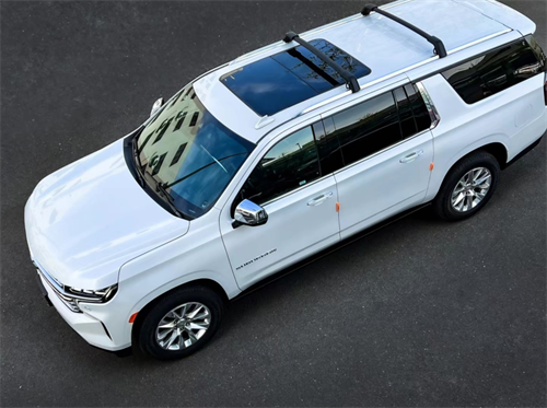 新款雪佛兰suburban外观造型设计还是以方正风格为主,车头横纹镀铬进气格栅气场不输凯迪拉克凯雷德,两侧更狭长的LED矩阵大灯光源很犀利,搭配小獠牙日行灯装饰,车头侵略感比较强。车身侧面属于很明显的全尺寸SUV身材,新一代产品比老款车型轴距增加了105mm,C柱后方超大面积侧窗与凯雷德如出一辙,搭配隔音隐私玻璃和平坦的车顶行李架,沉稳的气场很突出。