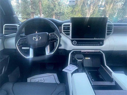 23款丰田红杉的内饰的实用性与空间利用率在这代红杉身上均得到提升,坐进车内,第一感受就是大,前排的两个大尺寸的真皮座椅,自带打孔透气皮料,四幅式多功能方向盘,握在手里的质感不错,转向也没有想象那么重,T型的中控平台,尺寸方面也比一般车型大不少,14英寸的中控触摸屏,集成了几乎所有的影音娱乐以及车身控制功能。