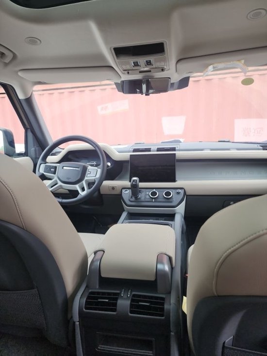 路虎卫士110内饰部分,新车使用了较为立体的中控台设计,相比现有的路虎车型实用性会更高,新鲜感更强。同时,新车也加入了更多的舒适与科技性配置,例如全液晶仪表盘、电子挡把、带温控显示屏空调面板等,相比现款车型来说要现代不少,这也让卫士更有底气对抗同级对手。