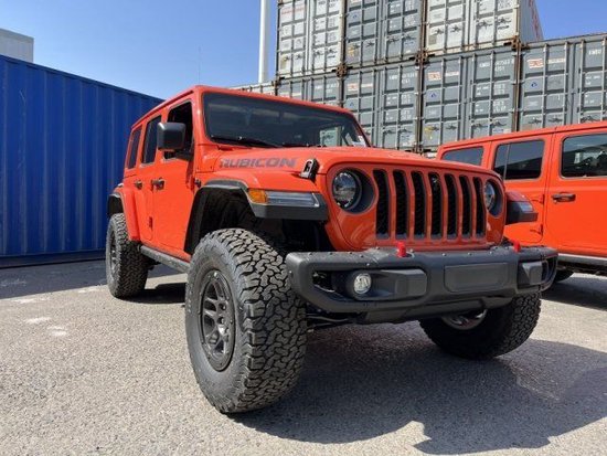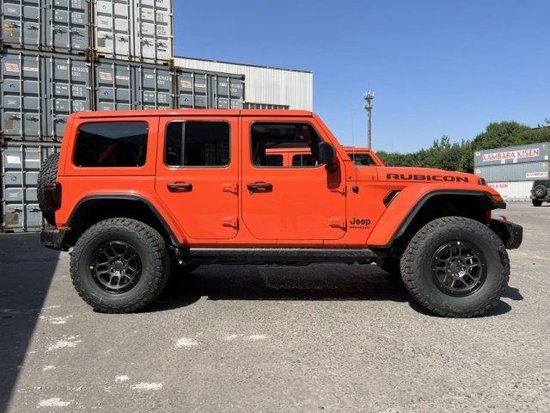 23款加版牧马人 朋克橙/黑红 配置: 标配: 四驱,2.0八速,一键启动,红色拖钩(前2+后1),电动加热外后视镜全尺寸备 胎,17寸雪花,轮胎285/70/17,高位轮眉,原车1.5寸升高,卤素灯,黑色硬顶。