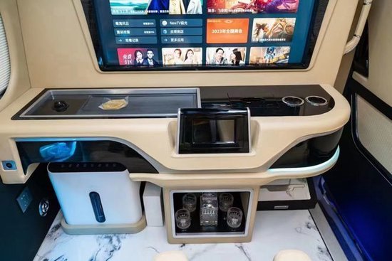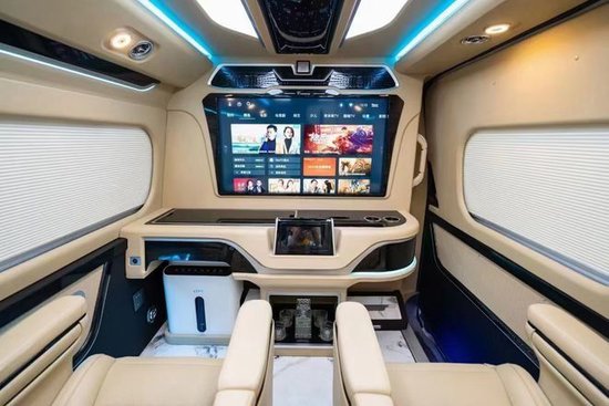 改装升级之后的丰田海狮增加了很多配置:29.5寸超宽屏电视机、安卓智能网络系统、多媒体9寸中控屏、后舱侧墙体带独立控制、无线充电装置、豪华大理石地板、高级音影系统、全车USB接口、中央扶手冰箱、乘客舱阅读灯、全车内饰皮革包覆、仪表台饰件、定制星光顶、全车窗台实木装饰(带LED灯饰)、涡轮空调出风口、整车侧墙体包覆、车内一体式踏板、第二排独立航空座椅、触控屏调节、通风加热旋转、氛围灯、第三排航空座椅、触控屏调节、通风加热、氛围灯、第四排电控沙发床可放平至180度平铺、LED大灯搭配流水转向灯、定制镀铬包围、豪华迎宾踏板、全车外观镀铬件饰条等等。。。。。。当然内饰定制颜色搭配、布局均可以根据要求进行定制,麻将机也可以选装哦!